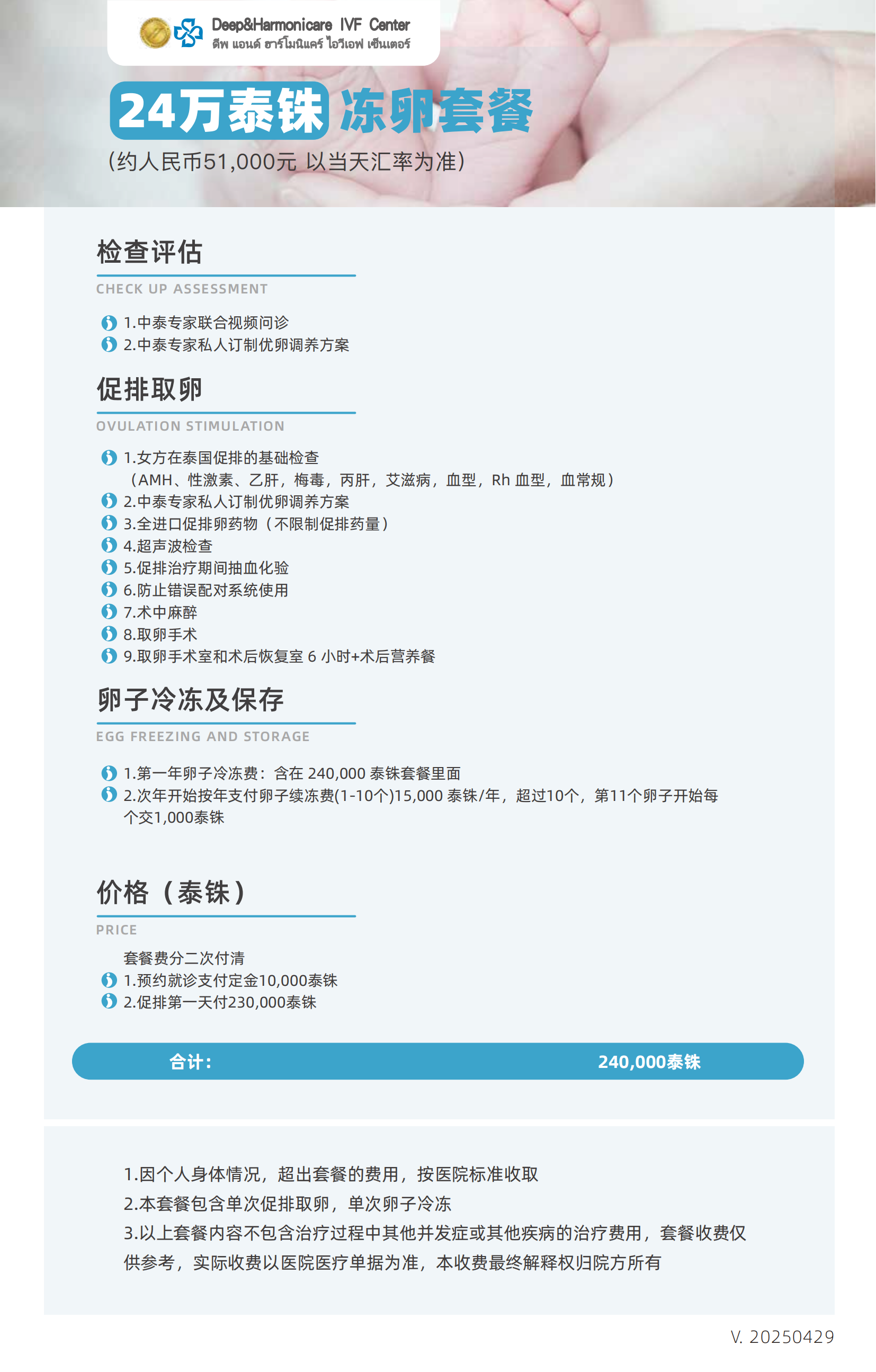 1.第一年卵子冷凍費(fèi):含在240,000泰銖套餐里面