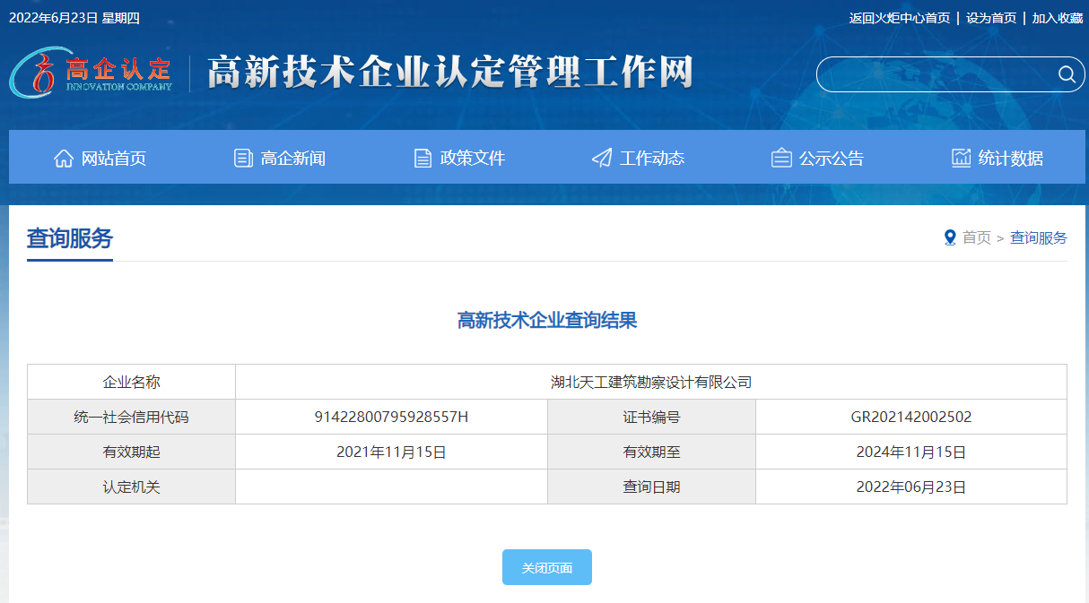 根據(jù)《高新技術企業(yè)認定管理辦法》(國科發(fā)火〔2016〕32號)和《高新技術企業(yè)認定管理工作指引》(國科發(fā)火〔2016〕195號)有關規(guī)定,湖北省公示了認定高新技術企業(yè)名單,湖北天工建筑勘察設計有限公司(以下簡稱“天工設計”)榜上有名,榮膺“國家高新技術企業(yè)”。