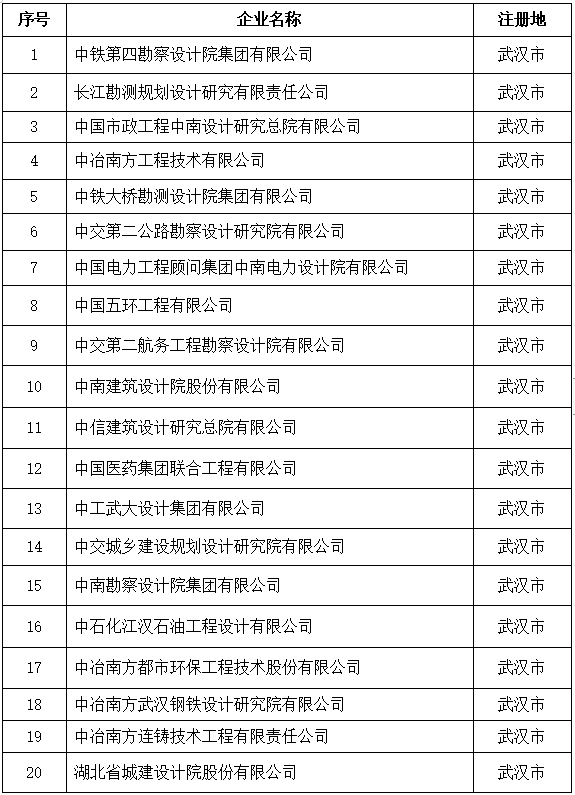 1.湖北省工程設(shè)計和施工雙資質(zhì)重點培育企業(yè)名單