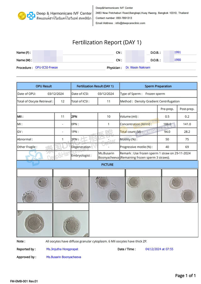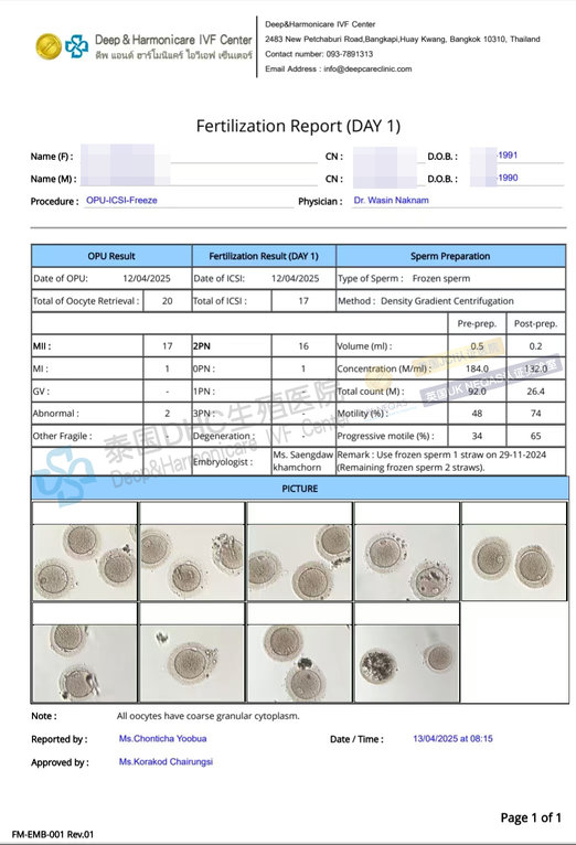 34歲客戶國內(nèi)試管失敗,求助DHC后,一促雖取卵11個(gè)但因卵子質(zhì)量差,養(yǎng)囊少,經(jīng)過3個(gè)月從營養(yǎng)均衡到個(gè)性化調(diào)理后,二促取卵20個(gè)? ,受精16個(gè)?,養(yǎng)囊13個(gè)?。