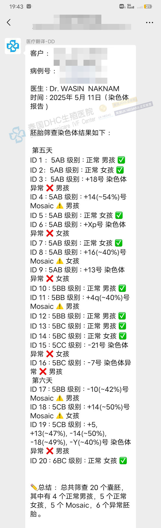 20枚囊胚→喜提9枚健康胚胎(4男5女)