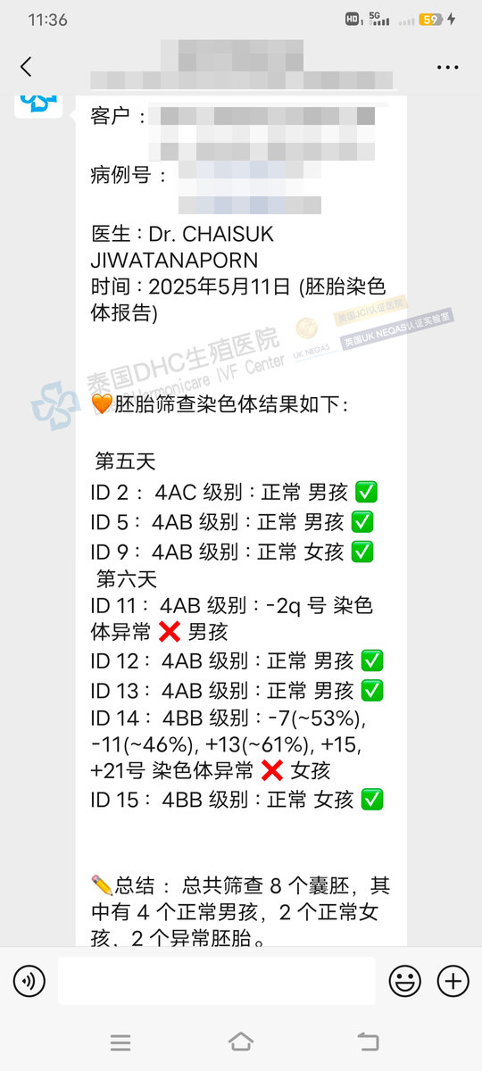 查雅思博士個(gè)性化方案大捷:?20枚囊胚→8枚送篩→斬獲6枚健康胚胎(4男2女)