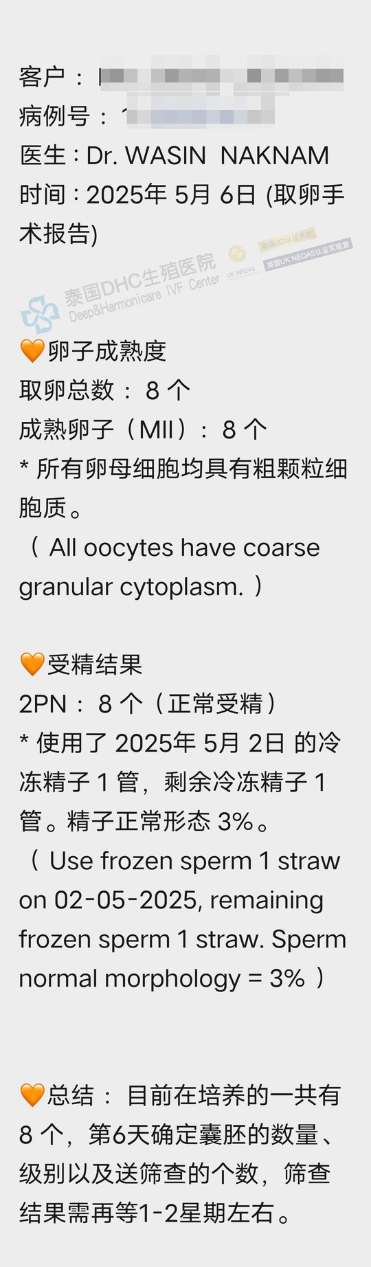 從精卵調(diào)理到囊胚收獲,從成功驗(yàn)孕到孕檢一路綠燈!在DHC中泰一體化診療模式下,每一步都走得踏實(shí)又幸福??
