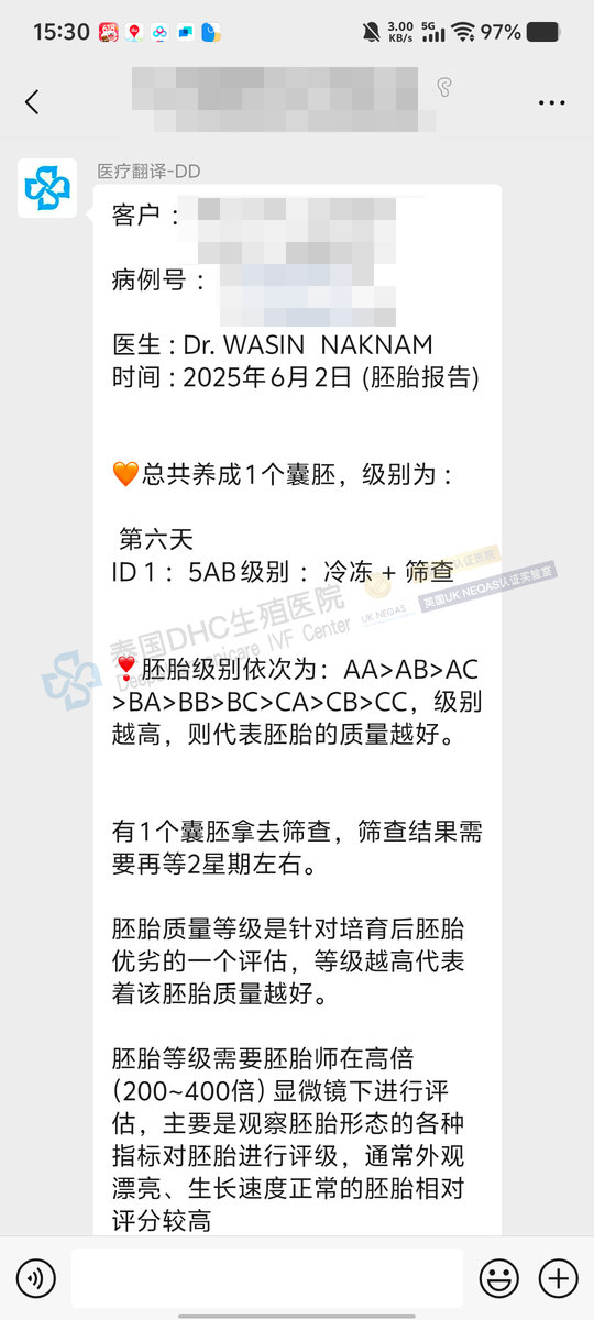 無精癥+高齡?萬星博士方案+實(shí)驗(yàn)室精心培育突破極限→客戶1枚受精卵變身5AB優(yōu)質(zhì)囊胚