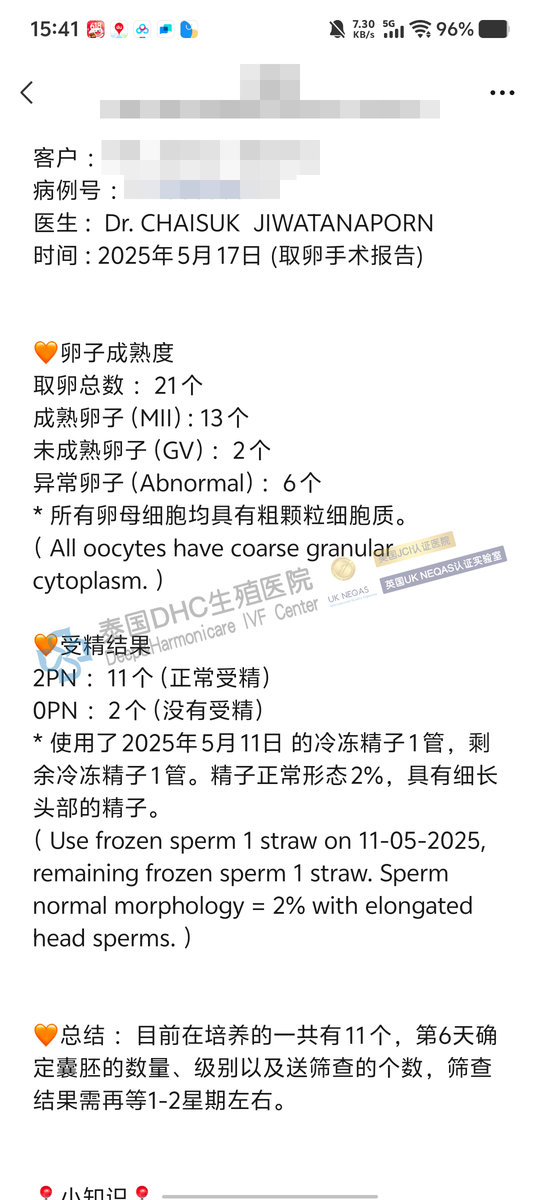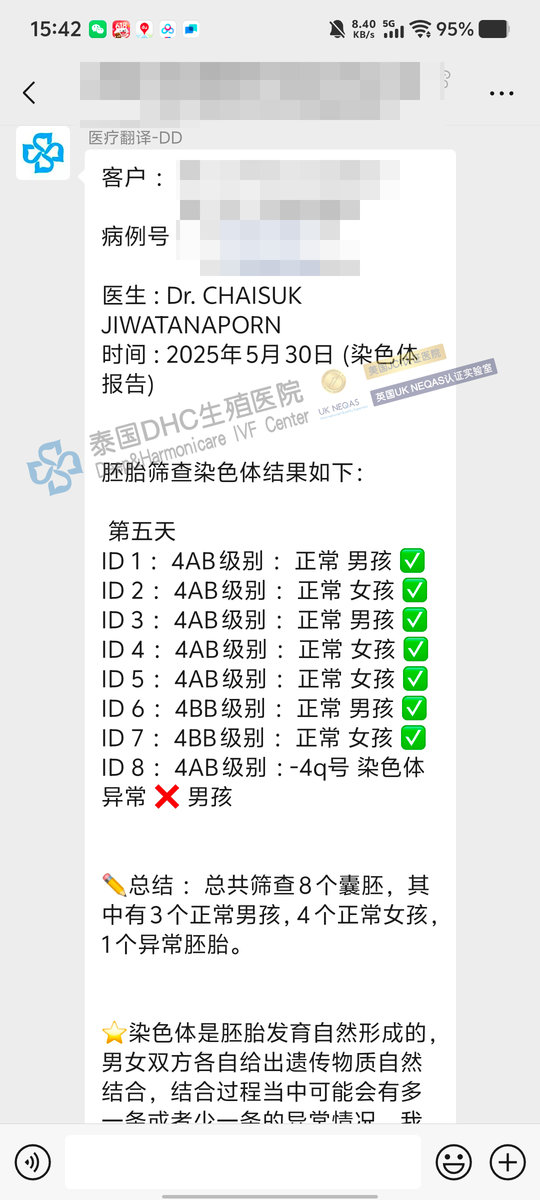 月經(jīng)不規(guī)律,久備不孕?查雅思博士個(gè)性化方案下,13成熟卵→11受精→8囊胚→過篩7枚健康胚胎(3男4女)