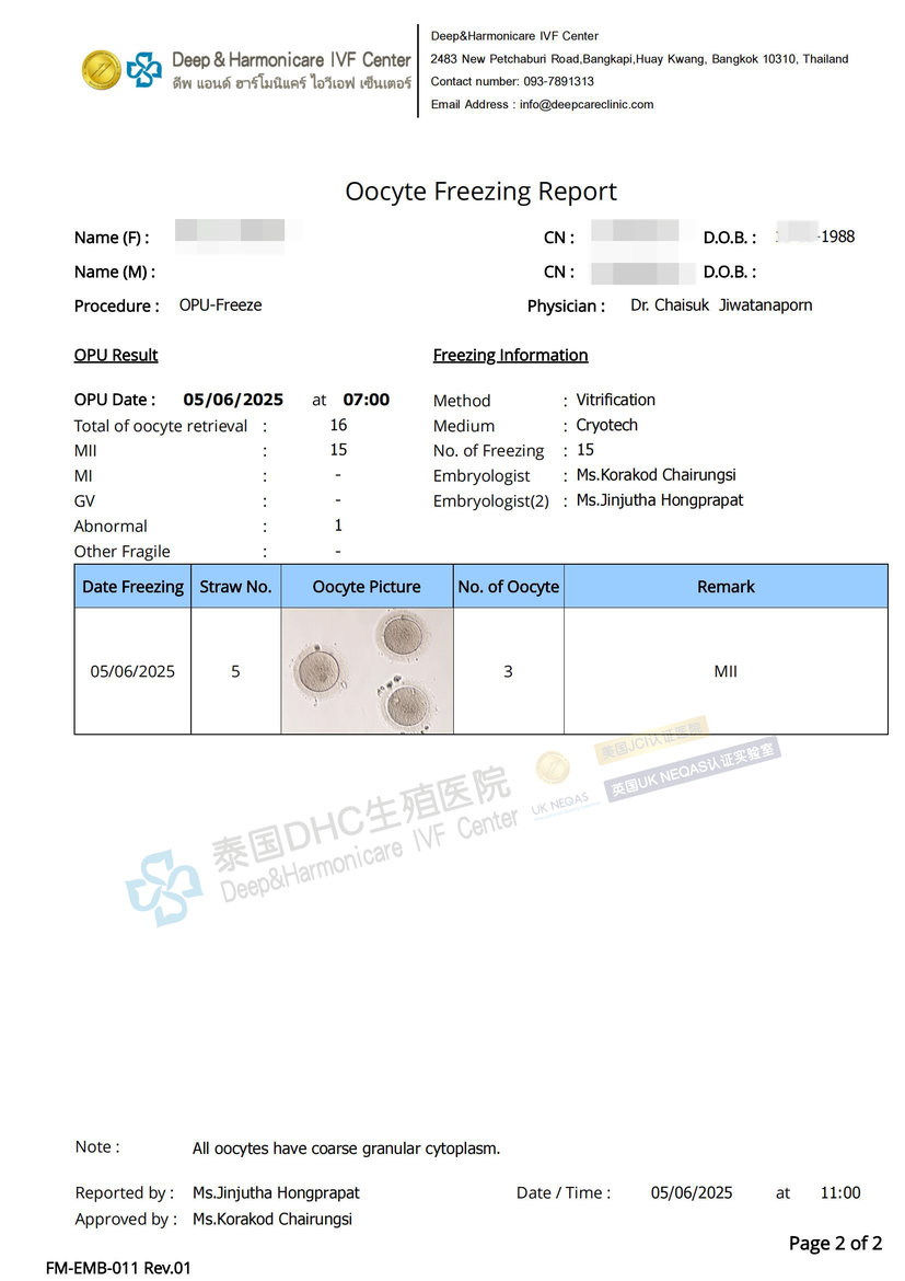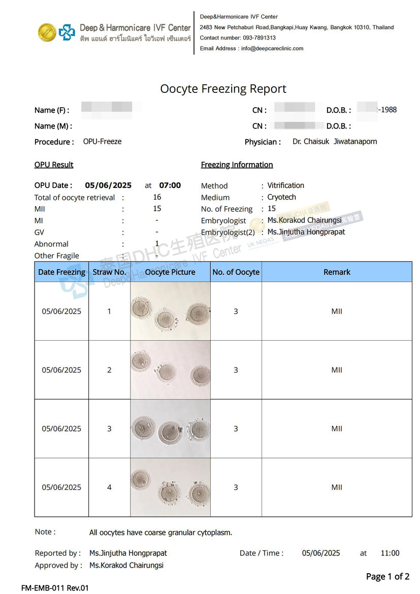 基礎(chǔ)卵泡12,經(jīng)查雅思博士方案,取卵16,冷凍成功15