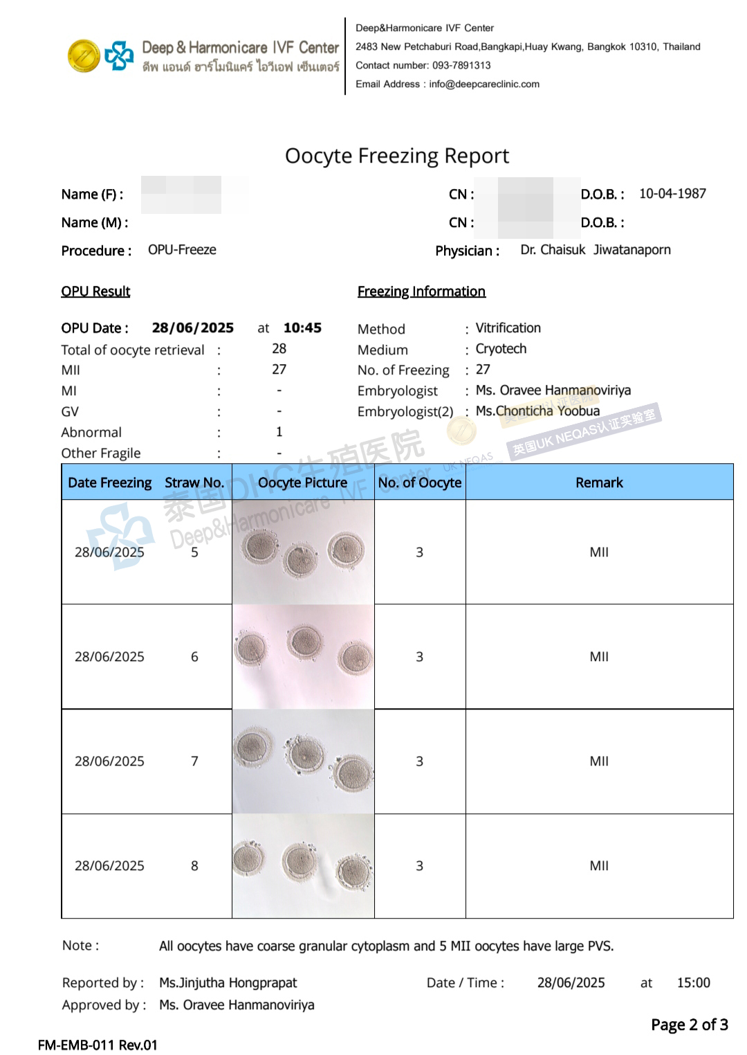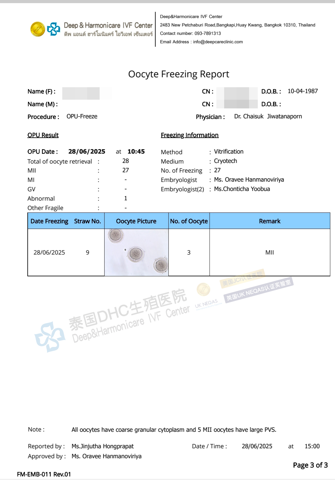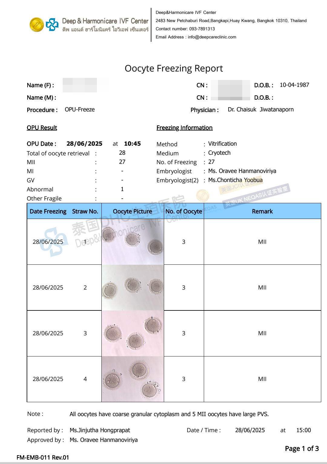 基礎(chǔ)卵泡17→取卵28→成功冷凍27顆黃金卵子