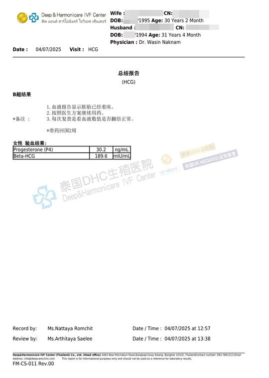 客戶雙胎移植,血值189.6,超強(qiáng)開(kāi)局驗(yàn)孕成功