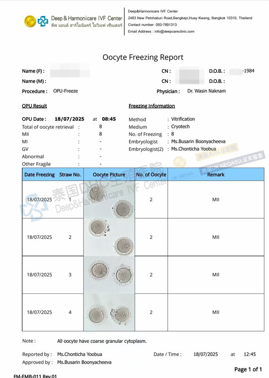 完美成果: 最終,她的 8顆基礎(chǔ)卵泡全部成功發(fā)育為成熟卵子,并被順利冷凍,實(shí)現(xiàn)了100%的成熟冷凍率!