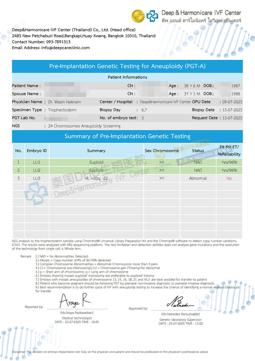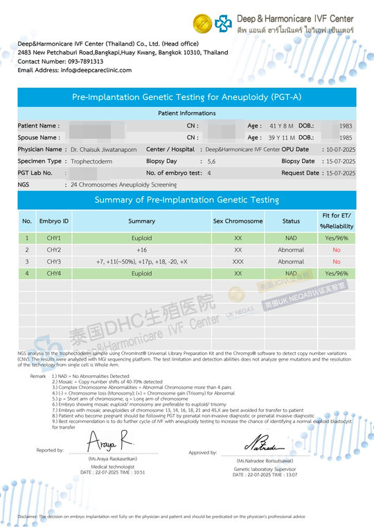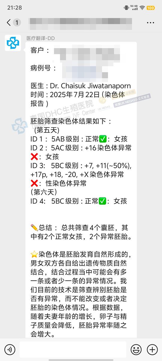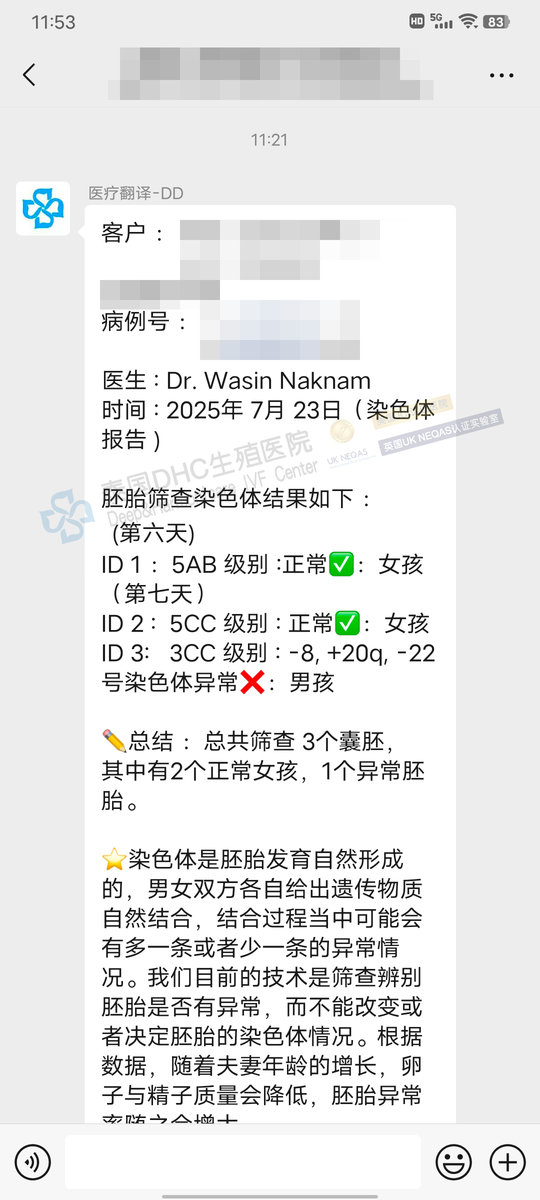 【解析】 本案例是PGT-A篩查優(yōu)勢的直觀展示。它表明DHC不僅能幫助客戶獲得囊胚,更能通過精準的篩查技術,幫助客戶獲得染色體健康的胚胎,并滿足其個性化生育的愿望。這對于有明確家庭規(guī)劃的客戶來說,具有極大的吸引力。