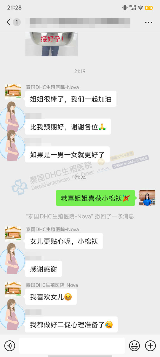 這位42歲的姐姐,已經(jīng)做好了進行第二次促排的心理準備。然而,驚喜總在不經(jīng)意間降臨。在DHC專家團隊的精心診療下,她第一個促排周期獲得的胚胎,就成功讓她“畢業(yè)”,驗孕成功,穩(wěn)穩(wěn)地擁有了期盼中的“小棉襖”!收獲比預期更完美的結果,讓姐姐對DHC充滿了感恩之情。