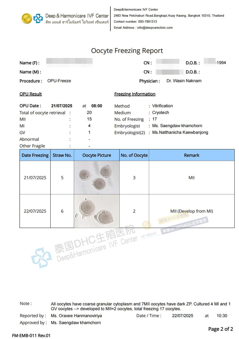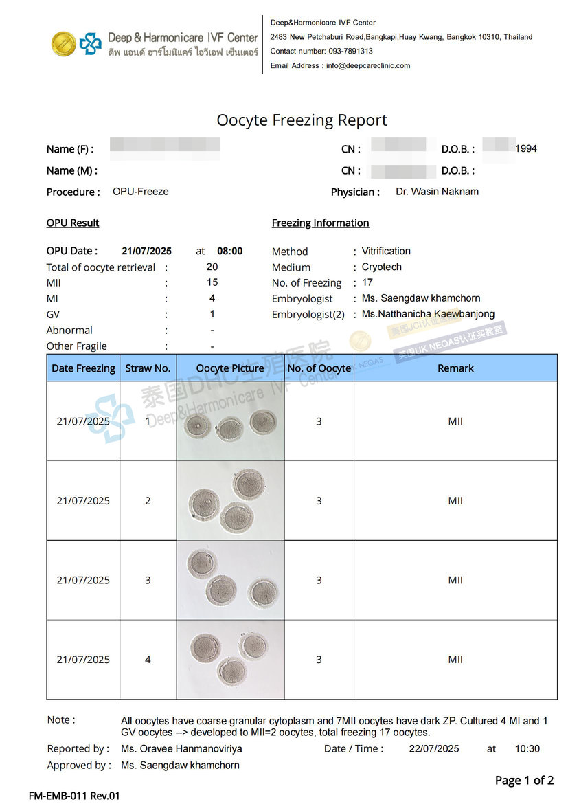 最終收獲: 共計 17枚 寶貴的成熟卵子被成功冷凍,為客戶的未來生育能力上了雙重保險。