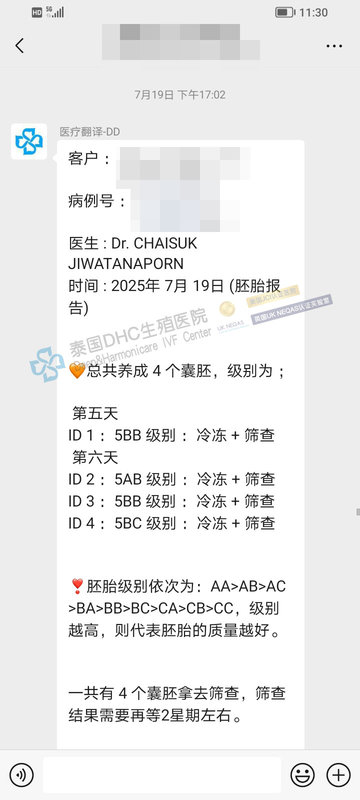 DHC破局: 在DHC,我們的專(zhuān)家團(tuán)隊(duì)和胚胎學(xué)家為她定制了全新的方案。結(jié)果令人振奮:她不僅獲得了 4枚高級(jí)別胚胎,更實(shí)現(xiàn)了 100%過(guò)篩 的驚人成果!