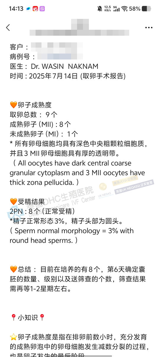 亮眼成果: 最終成功取出8顆卵子,并實現(xiàn)了100%的受精率,更成功培育出3枚通過PGT篩查的健康囊胚!客戶滿意地稱贊:“還得是你們專業(yè)水平高!”