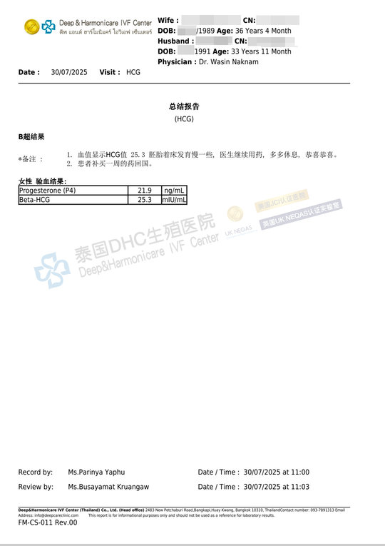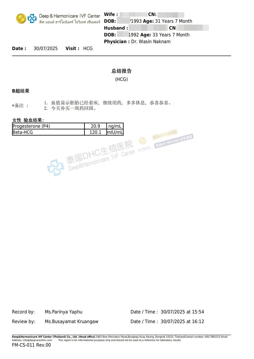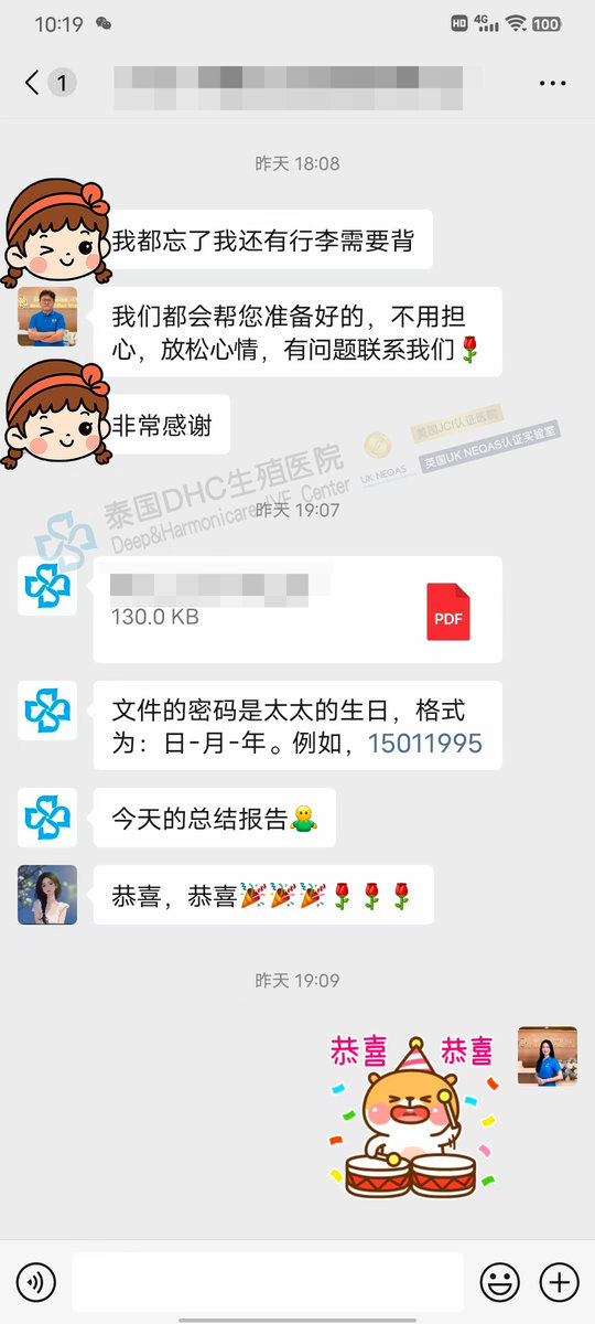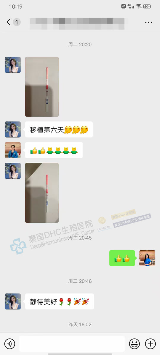 承諾守護(hù): 我們的服務(wù)并未止步于驗(yàn)孕??蛻艋貒?guó)后,DHC的**“中泰一體化”**服務(wù)團(tuán)隊(duì)將繼續(xù)跟進(jìn)她的孕期情況,提供專業(yè)咨詢與指導(dǎo),持續(xù)守護(hù),直至客戶安全分娩。