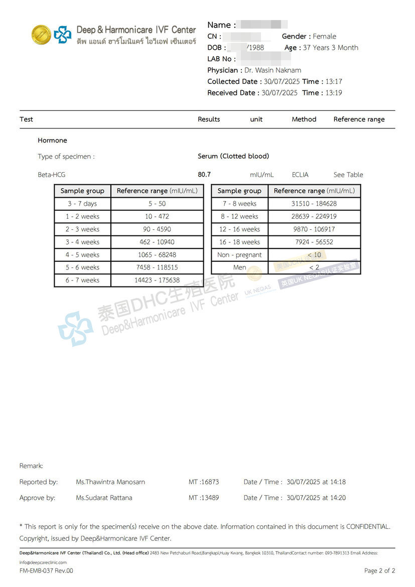 每一次強(qiáng)有力的心跳,每一個(gè)“超給力”的HCG數(shù)值,都足以點(diǎn)燃整個(gè)團(tuán)隊(duì)的熱情。我們同樣要恭喜這位37歲的姐姐,順利驗(yàn)孕成功,并且HCG數(shù)值非常理想!