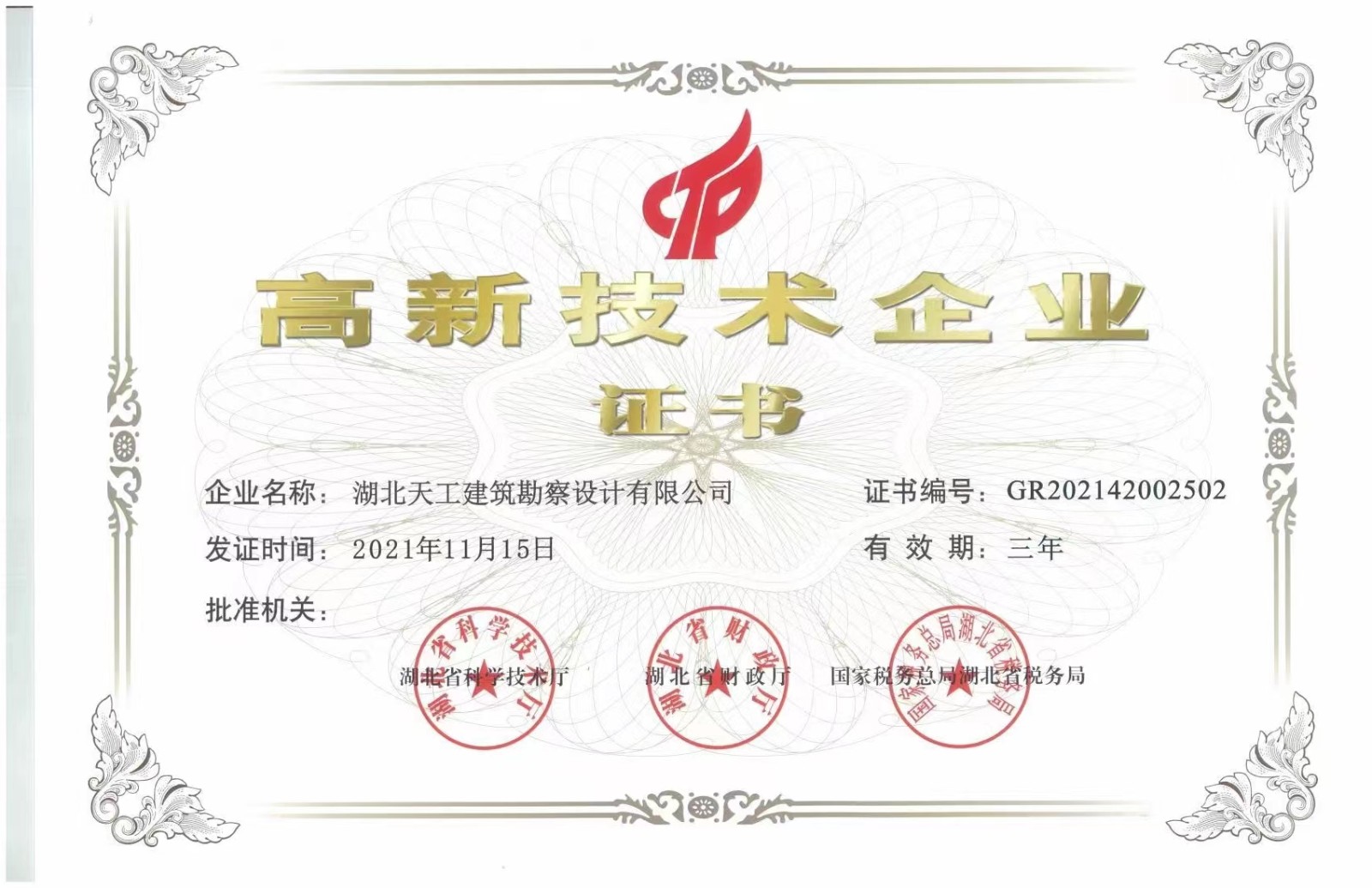 根據(jù)《高新技術企業(yè)認定管理辦法》(國科發(fā)火〔2016〕32號)和《高新技術企業(yè)認定管理工作指引》(國科發(fā)火〔2016〕195號)有關規(guī)定,湖北省公示了認定高新技術企業(yè)名單,湖北天工建筑勘察設計有限公司(以下簡稱“天工設計”)榜上有名,榮膺“國家高新技術企業(yè)”。