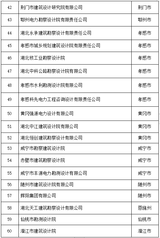 湖北省工程設(shè)計和施工雙資質(zhì)重點培育企業(yè)名單