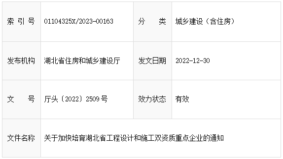 [轉(zhuǎn)載湖北省住房和城鄉(xiāng)建設(shè)廳網(wǎng)]關(guān)于加快培育湖北省工程設(shè)計和施工雙資質(zhì)重點企業(yè)的通知