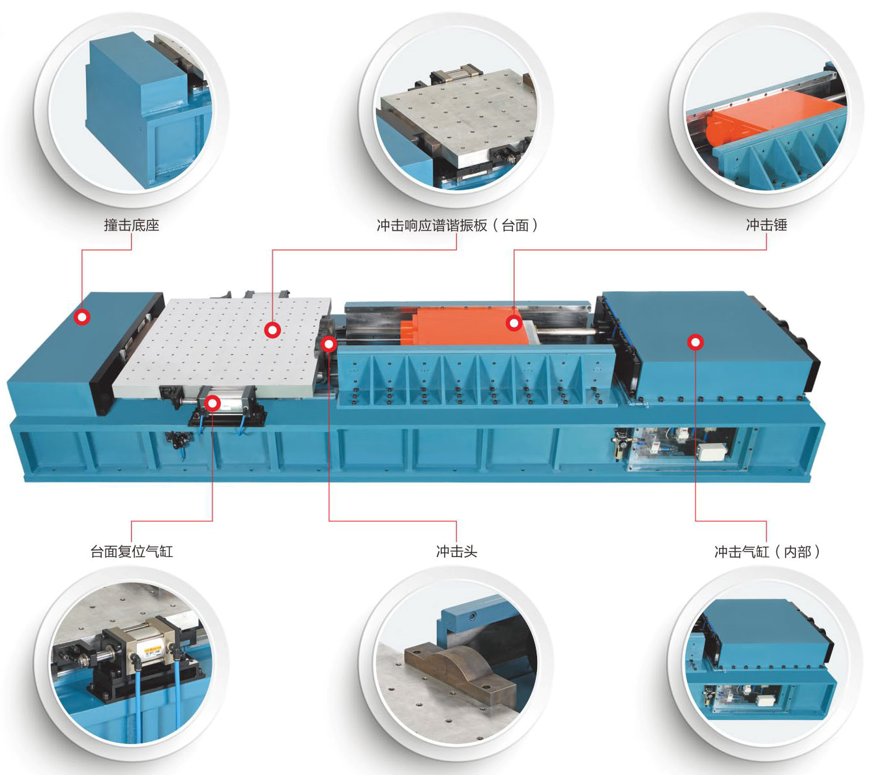 HSRS系列氣動水平?jīng)_擊響應(yīng)譜試驗機(jī),是利用沖擊氣缸在水平方向推動沖擊錘撞擊諧振板,產(chǎn)生高能量沖擊的響應(yīng)譜試驗機(jī)。主要用于測量和確定航天、航空、武器裝備、電工電子產(chǎn)品的抗沖擊性能,并評估沖擊環(huán)境下產(chǎn)品的可靠性和結(jié)構(gòu)的完好性,能更真實(shí)有效地反應(yīng)沖擊對試件的損傷情況。具有沖擊能量大、可靠性高、性能穩(wěn)定、重復(fù)性好、操作簡單、安全環(huán)保等特點(diǎn)。 HSRS系列氣動水平?jīng)_擊響應(yīng)譜 試驗機(jī)由四大部分組成: ·水平?jīng)_擊主機(jī) ·控制系統(tǒng) ·測量系統(tǒng) ·配套氣源